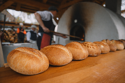 Zažijte vůni i chuť kváskového chleba, upečeného v naší nově zbudované venkovní chlebové peci, při ukázce tradičního pečení.